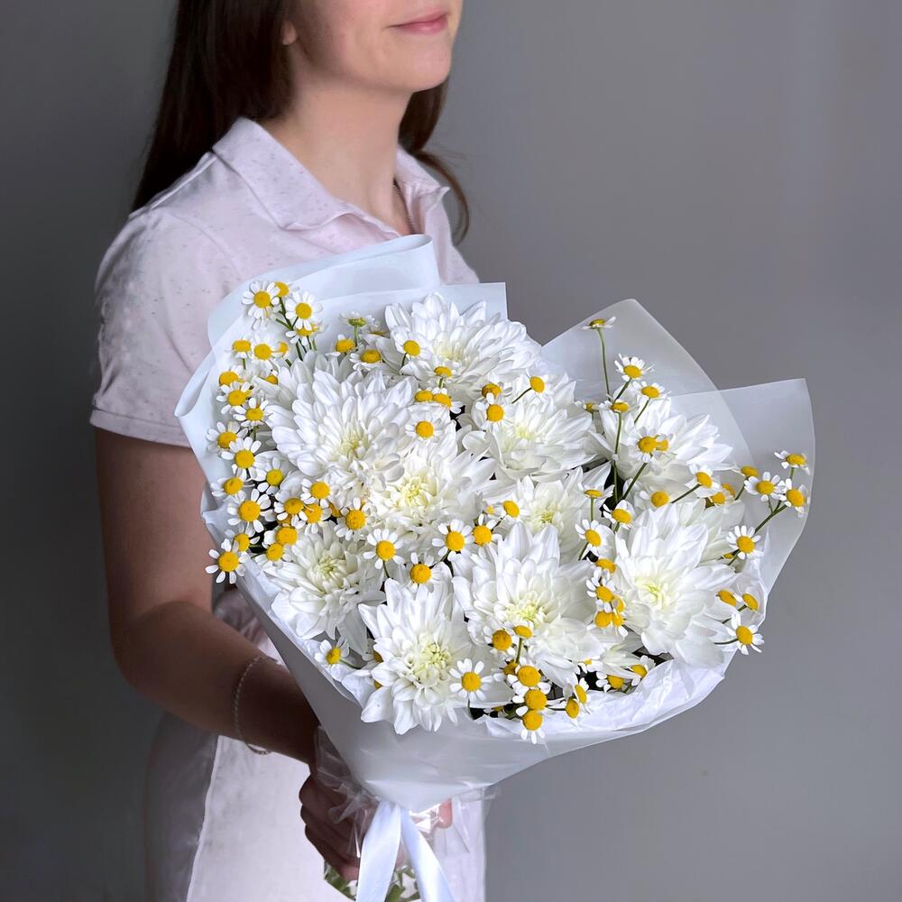 Воздушный букет с легким ароматом ромашки, который максимально подойдёт по любому поводу и без повода тоже 🙂